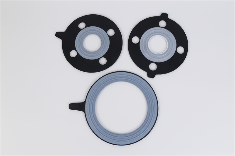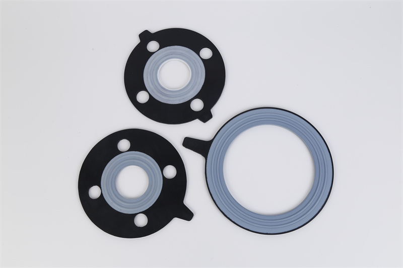 聚四氟乙烯/橡胶整体复合垫片与其它聚四氟乙烯包复垫片相比,其最大的优点是采用特殊熔融粘合工艺使聚四氟乙烯塑料,与合成橡胶紧密熔合,整体复合性极佳。该产品既有优良的耐腐蚀无毒、抗粘性,又具有良好的弹性和密封性能。适用于化工、石化、食品、医药等行业的腐蚀性介质或高清洁度要求的管线法兰密封。外观 表面应平整、光滑、 厚度均匀,且不得有 孔眼及夹渣等缺陷。